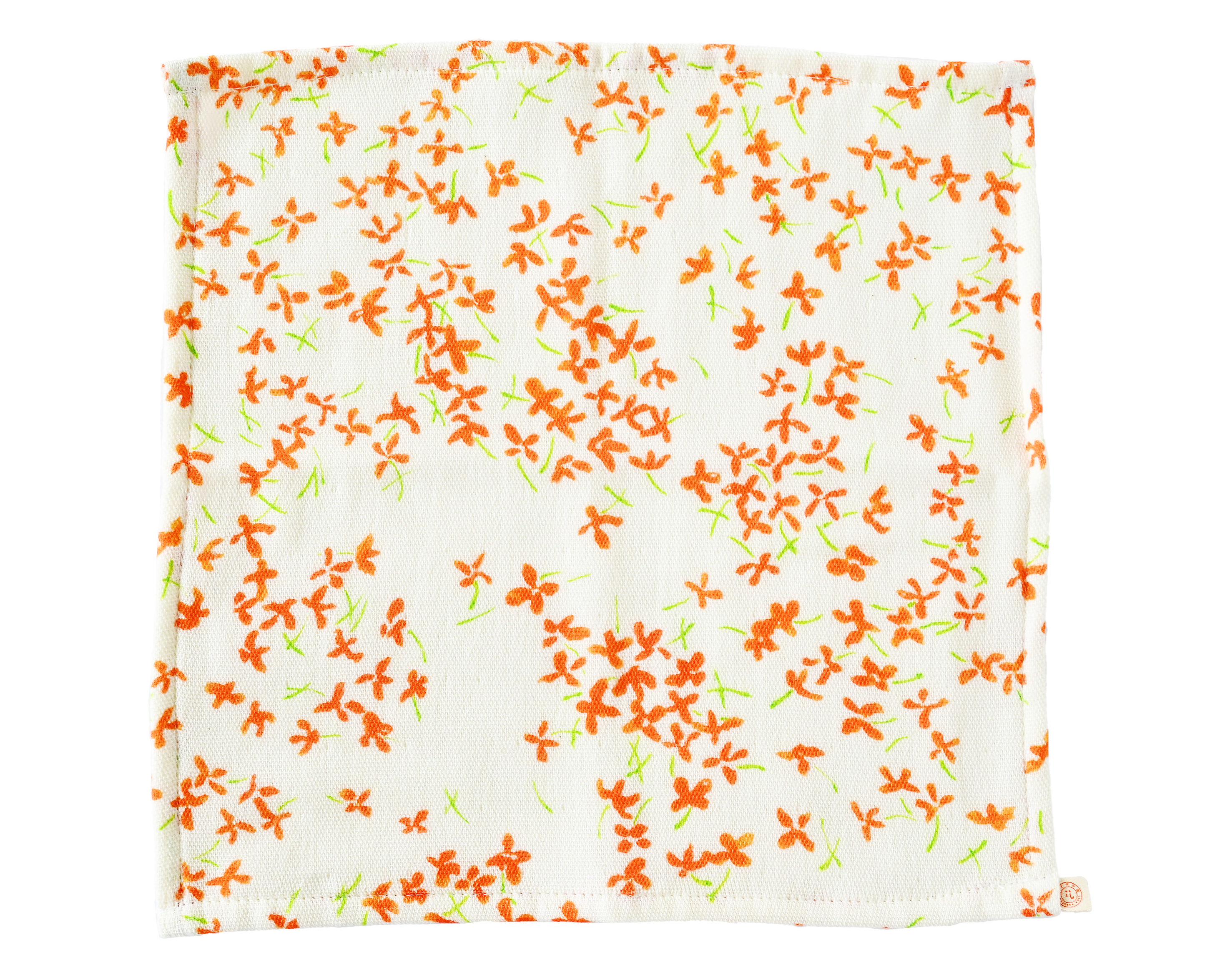 白地に鮮やかなオレンジの花が咲く「キンモクセイ」柄