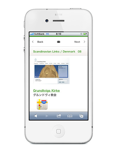 「はじめての北欧/旅メモ」のコンテンツの中にある、「北欧おすすめサイト一覧」には、旅先でも役立つWEBへのリンク先が載っています。MAPボタンをタップすれば、Googleマップが起動して、地図上にピンがドロップします。「現在位置情報」と「経路」を活用すれば、iPhoneで目的地までのアクセスを調べられます。