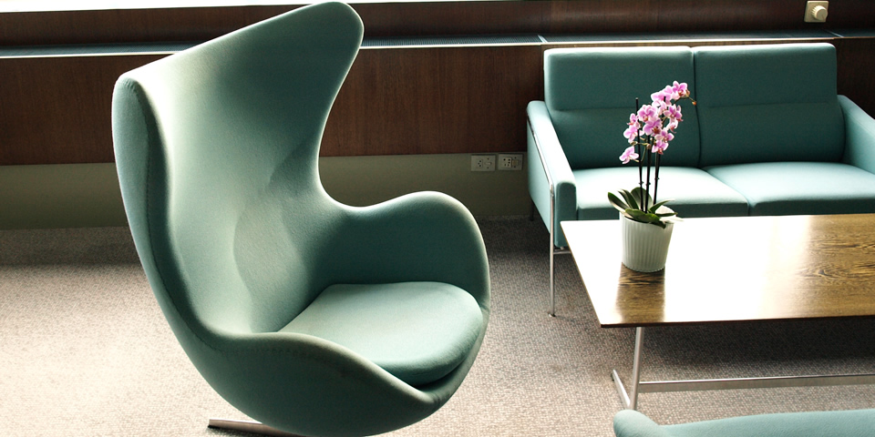 “たまご”のカタチをした美しいフォルム。体をすっぽりとやさしく包み込み、安らぎとくつろぎを与えてくれる優雅な椅子、ザ・エッグ(The Egg)。SASロイヤルホテルのためにデザインされ、当時最先端の発砲ウレタン成型でつくられた60年代のハイテクチェアです。名作アントチェア(The Ant)や、セブンチェア(Series 7)には座ったことがあっても、エッグチェアは初めてでした。だって、価格が70万〜100万円もする、とても高価なもの。ふつうの人が座れる機会なんて……と思っていたら、北欧の空港にも置いてあって、小さな子供がゆったりくつろいでいました。いつか、あの子が大きくなって、たまごの価値を知っても、その美しいデザインが色あせることはないでしょう。エッグチェアは時代の先を行く、未来のカタチなのです。