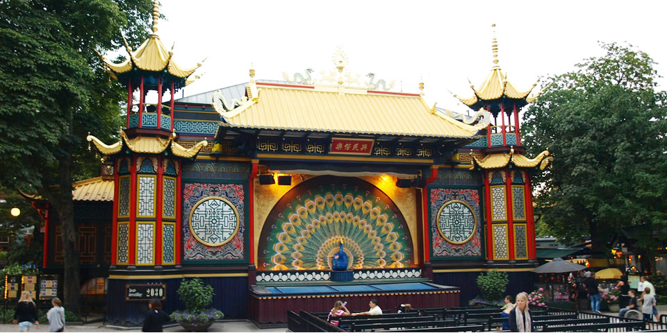 チャイニーズ・レストランのとなりにあるクジャクの小劇場。園内にはアジアゾーンがあって、チャイニーズのようなジャパニーズのような朱色の五重塔?が建ってました。ステージもいくつもあって、ピーコック劇場ではパントマイムショー、コンサートホールではABBAのヒットナンバーでつづるミュージカル『マンマ・ミーア!』を上演してました。そうそう、公園の真ん中にあるオープン・エア・ステージはものすごい人だった! 若い女の子のファンたちが「キャー!キャー!」騒いでて。きっとデンマークの人気ミュージシャンがライブをしていたのね。異様な熱気がエキサイティングでした。