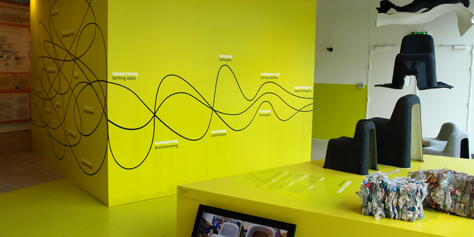 DDCの1Fと2Fのフロアでは、インテリア、ファッション、グラフィックなど、様々なジャンルのエキシビジョンが展開されています。「10+ Design Forecast」展では、作品を展示する壁やテーブルなどがすべてイエローで統一されていました。 未来に明るい光が差し込むような、そんなイメージ。21世紀になってからのデンマークデザインの10年は、めざましい技術の進歩とともに、新しい方向性を示してきたようです。デジタルによるイノベーションは、新しいデザインの流れとなって、より機能的で直感的なカタチへと進化しているとか。デンマークの新鋭クリエイターたちは、かつてのヤコブセンやウェグナーと同じように、伝統的なものづくりの方法にとらわれず、つねに未来を見据え、機械やテクノロジーの可能性にかける勇気を持っています。