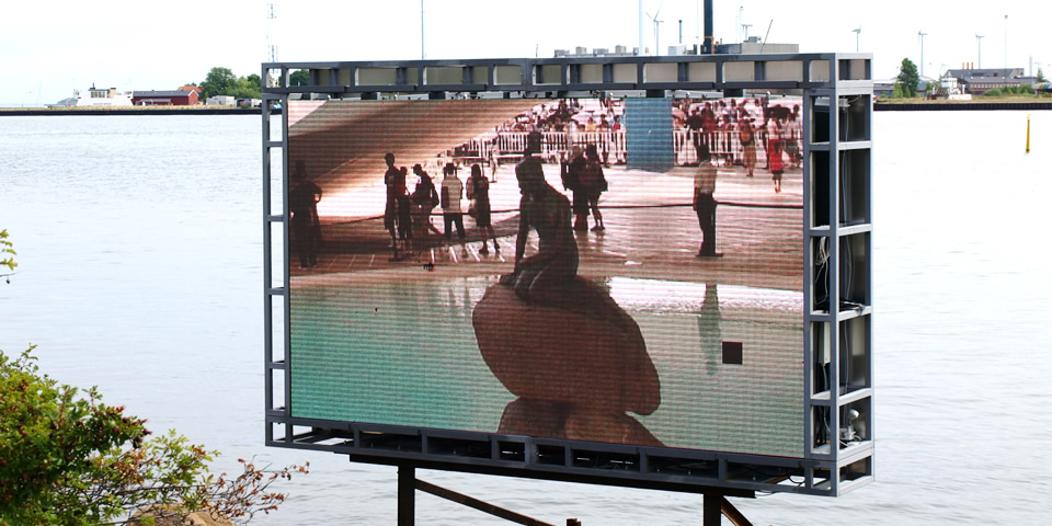 おとぎの国デンマークの象徴、1913年に彫刻家エドワード・エッセンによってくつられた人魚姫の像。人魚姫なのに、腰から下が魚ではではありません。足首あたりからヒレの形になっています。理由は、モデルの足があまりに美しかったため、という説が。リトル・マーメイドのモデルは王立劇場のプリマドンナで、のちに彫刻家の夫人になられたそうです。コペンハーゲンの人魚姫の像は、シンガポールのマーライオン、ブリュッセルの小便小僧と並んで、世界三大ガッカリの名所として知られています。どんなガッカリが待ち受けているのかと、逆に楽しみにしていたら……なんと、人魚姫がいない! 像がない! 上海万博へ、初の海外出張に出かけたそうです。大型モニターに、上海の人魚姫がリアルタイムで映し出されていました。今回も期待を裏切らないガッカリ度でした!