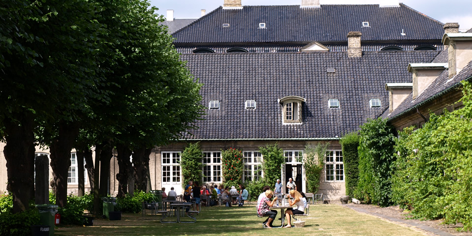 工芸博物館の中庭は開放的で、とても美しい。デンマークの人たちは、天気のいい日は外でランチやフィーカ(ティータイム)を楽しむそう。この中庭が、ランチタイムにいっぱいになるのがよくわかります。日本の美術館や文化施設のカフェは、軽食しかなかったり、高級レストランで入りにくかったりと、なかなか記憶に残るような店に出会えない。でも、ロココ調の建物に囲まれた、木々の緑がまぶしいこの中庭のようなカフェだったら、一度訪れたら一生忘れません。文化と自然とティータイムが、ひとつに調和する素晴らしさ。こういう空間の大切さ。日本ももっと考えてほしいな。町の美術館や博物館、文化会館や図書館にこんなスペースがあったら、出かけるのがどんなに楽しみなことか。ふつうの人びとの日々の暮らしの中に、中庭へつづく入口をつくってほしい。