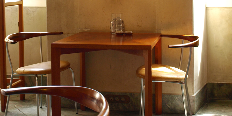 工芸博物館のカフェのためにつくられたアームチェア(PP-701)は、ウェグナー夫人が最もお気に入りの椅子で、自宅のダイニングでも愛用しているとか。ホーン(角)のような笠木は4つのメープルの木片でつくられていて、削り出しに使われた残り木を利用してるそうです。「木を知り、木を愛する」ウェグナーの椅子は、ただ、そこにあるだけで、生命の息吹のような、気品を感じます。うっとりするほどの美しさ。そして、ゆったりした時間と、落ち着きをもたらしてくれるもの。 PP-701に座って、コーヒーを飲みながら工芸博物館の中庭を見ているだけで、時間が自分の体の中を流れてゆくような、不思議な気分になりました。木に癒されるように、ウェグナーの椅子は、座るものに力を与えてくれます。