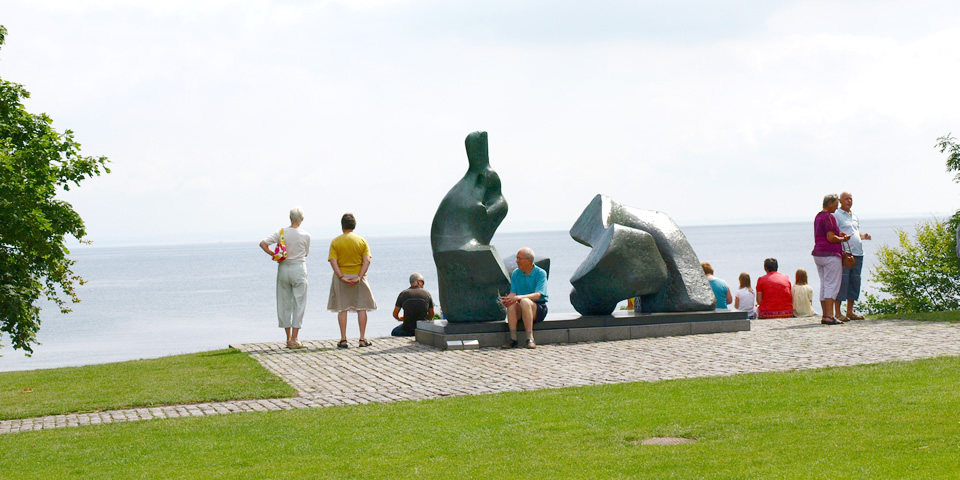 オーレスン海峡を眺められる絶好のビューポイントには、ヘンリー・ムーア(Henry Spencer Moore)の彫刻。海の向こうにはスウェーデンが見えます。ルイジアナ美術館のコンセプトは、自然と建築がすべてを表現できる空間をつくること。海があり、湖があり、小高い丘や、起伏に富んだ地形を活かした建築は、四角い箱の中にとどまらない、目に焼きつくような景観の美しさがあります。設計を手がけた建築家ヨルゲン・ボー(Jørgen Bo)とヴィルヘルム・ヴォラート(Vilhelm Wohlert)の2人は、何ヶ月も歩き回って理想の場所を探したそうです。自然とアートが調和する世界一の美術館は、訪れたものに、海を望むような空間の広がりと、緑の素晴らしさを教えてれます。