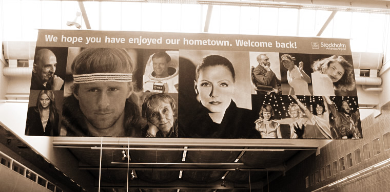 アーランダ空港に離陸し、SASを降りると、空港ゲートからスウェーデン出身のレジェンドたちが私たちを出迎えてくれます。グレタ・ガルボ、イングリット・バーグマン、ABBA……ウェルカムボードに「Welcome to my hometown!」や「Welcome back!」の言葉が。極東の小さな国から一人でやってきた私に、こんな盛大な歓迎が待っているとは!とにかくうれしくて、レジェンドたちに小さく会釈しました。