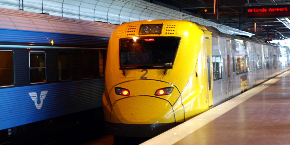 アーランダ空港ターミナル5から、ストックホルム中央駅までのアクセスで最も早くてスムーズなのが、黄色い特急列車アーランダ・エクスプレス(Arlanda Express)。スウェーデン版の成田エクスプレスです。フィンツアーから往復チケットをもらっていたので、そのまま飛び飛び込み乗車!直行で約20分、中央駅へ到着。座席も大きくて快適でした。