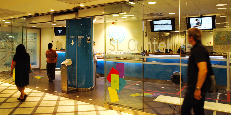 市内観光の前に、まずは中央駅B1にある水色の SL(ストックホルム交通局)のロゴの SL-Center で、メトロ・バス・トラムの路線図が入ったシティマップをゲットしましょう。公共交通機関が乗り放題になる、お得なトラベルカードもここで購入できます。日本のSuicaやPASMOみたいに、改札でピッとやるカード。ブルーでかわいくて、愛着がわきます。色はいろいろあるみたい。