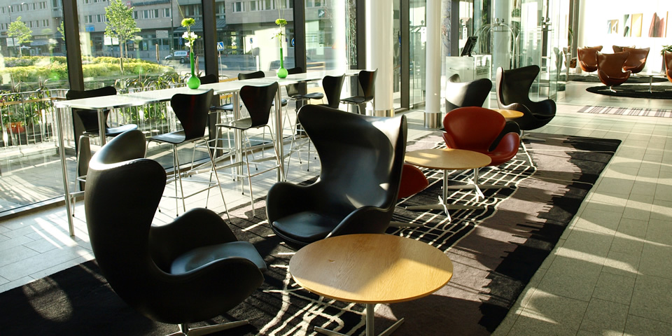 ヤコブセンのエッグチェアがずらりと並んだ、エレガントなロビー。窓の外には緑と公園があり、ああもう、ここでゆっくりしているだけで幸せ。 きびきびと動き回るホテルのスタッフも、男女とも黒服をビシッと決めてかっこよかった!黒には長い足とブロンドの髪がきまります◎ 最初北欧の人はみんなツンツンしているような印象を受けたけど、「Hej!」と声をかけたら、みんな笑顔で気さくに話しかけてくれました。それにしても、スウェーデンは美女とイケメンが多い!!