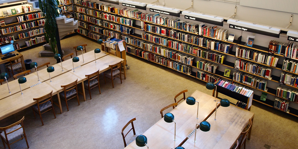 円形ホールの東西南北には、専門書の部屋へとつながる入口があります。勉強部屋にはアスプルンドがデザインした椅子やアートがあり、ここでみんな読書にふけります。うらやましい!奥には「ムーミン」など、童話がいっぱいのこども部屋も。白いガチョウにのった小さな男の子の飾りを見つけ、スタッフに「あれは、ニルス?」と訪ねると「Ja!(そうよ!)」と微笑んでくれました。小さいころ、大好きだったスウェーデンの童話「二ルスのふしぎな旅」は、今も自分にとって大切な本です。