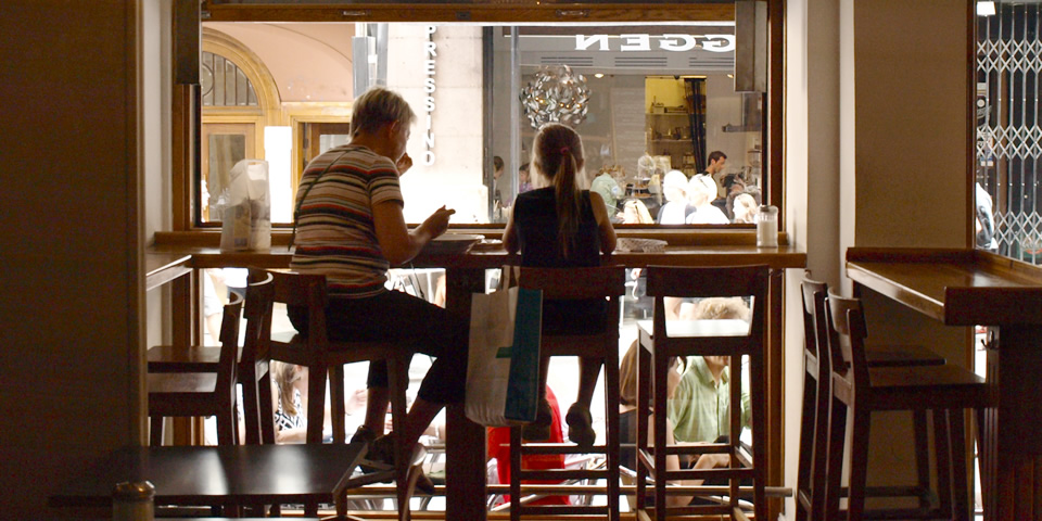ヨーダ通りの、白木の内装とインテリアがおしゃれなカフェ MUGGEN(ムッゲン)。ハートのラテアートが描かれたカフェラテ(35SEK/約420円)でフィーカしました。スウェーデンでは「フィーカ」は生活に欠かせない、とても大切な時間だとか。日本人も「ティータイム」をもっと大事にすべき! 深煎りのラテもおいしかったけど、ここはパスタもイケます。