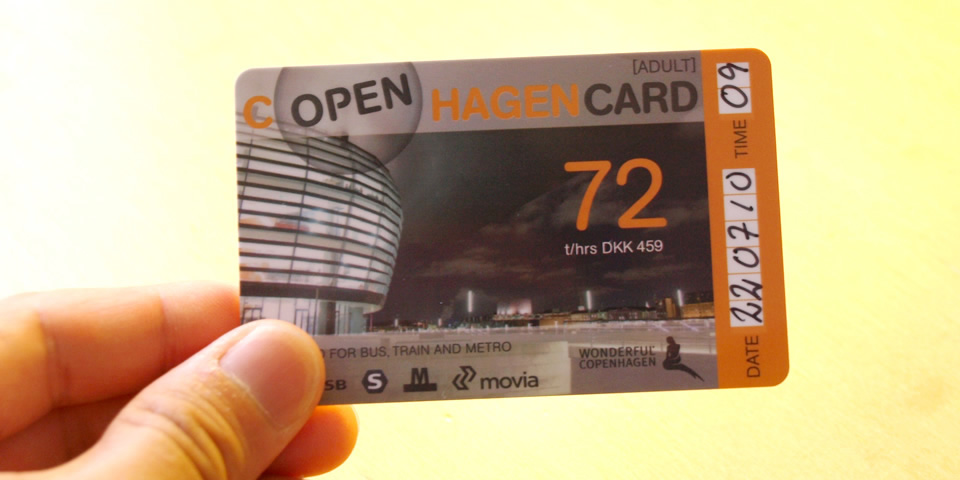市内の公共交通機関(バス、電車、地下鉄、水上バス)と美術館・博物館が無料または割引になる、とってもお得な「コペンハーゲンカード」。観光案内所、ホテル、空港、駅などで購入できます。