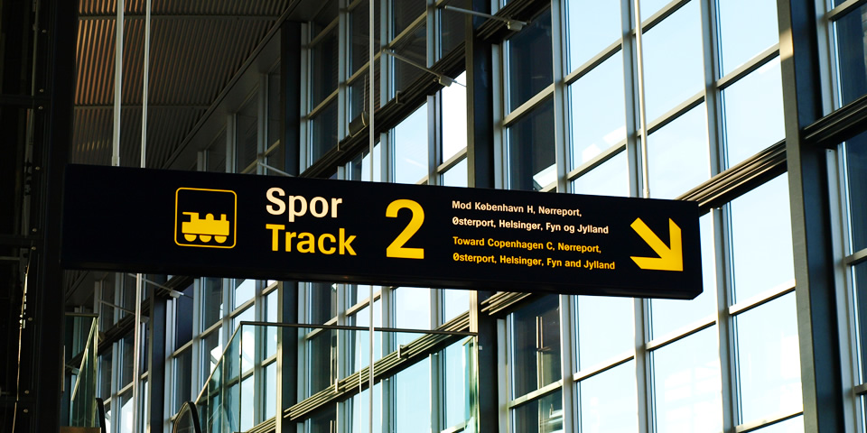 (Københavns Lufthavn, Kastrup)から、コペンハーゲン中央駅(København H)までをデンマーク国鉄(DSB)の列車が結んでいます。2番線(写真)から発車して3番目が中央駅。約13分で到着。空港から市街まで一番早いアクセス。料金は31.5DKK(約473円)。間違えて反対側の列車に乗ると、スウェーデンのマルメへ行ってしまうので注意しよう。