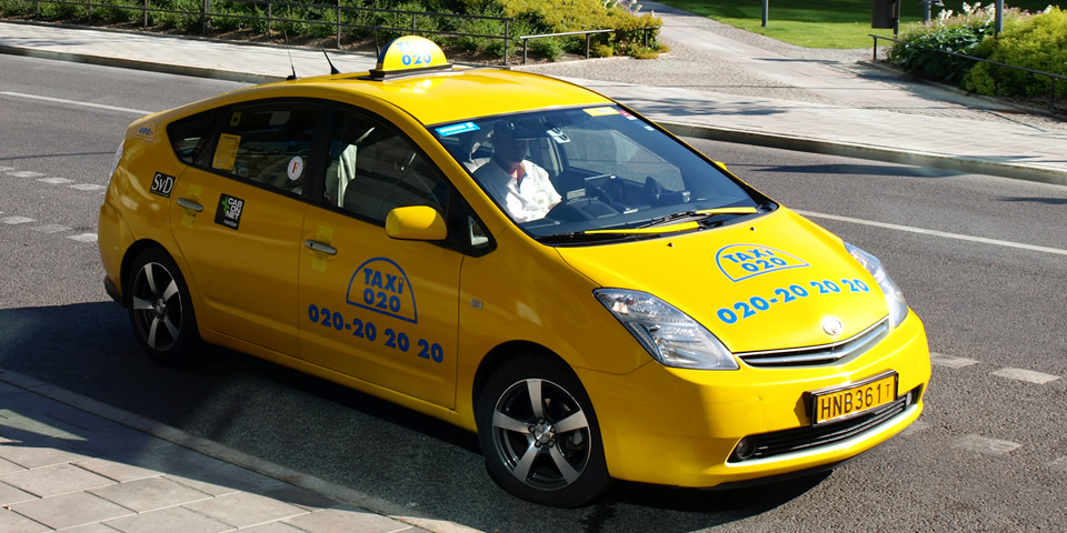 タクシーの車種はベンツやボルボ、そしてトヨタのプリウス(写真上)。ストックホルムでよく走ってました。エコな北欧にはハイブリッドカーがぴったりきます。