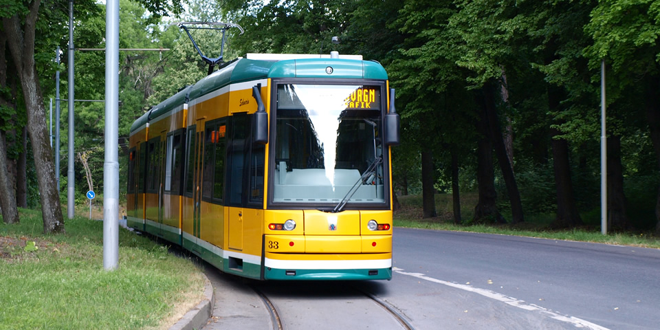 ストックホルム市内、ベルツェリー公園とユールゴーデン島を結ぶトラム。地下鉄、市バスの共通チケットや、トラベルカード・ストックホルムカードで乗車できます。