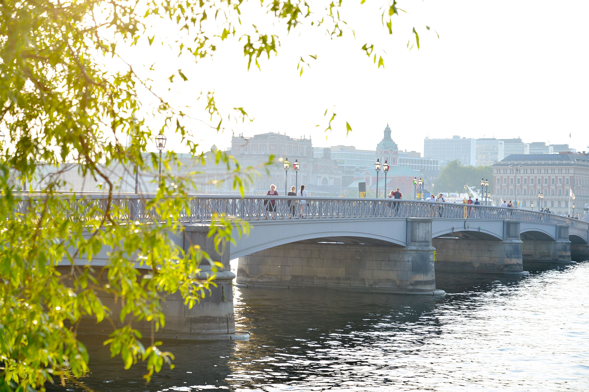 スウェーデン国立美術館を前を進むと、シェップスホルメン島へ橋がかかっています。橋の真ん中には金の王冠があって、そこはストックホルムのランドスケープをカメラにおさめることができる絶好の撮影ポイントです!