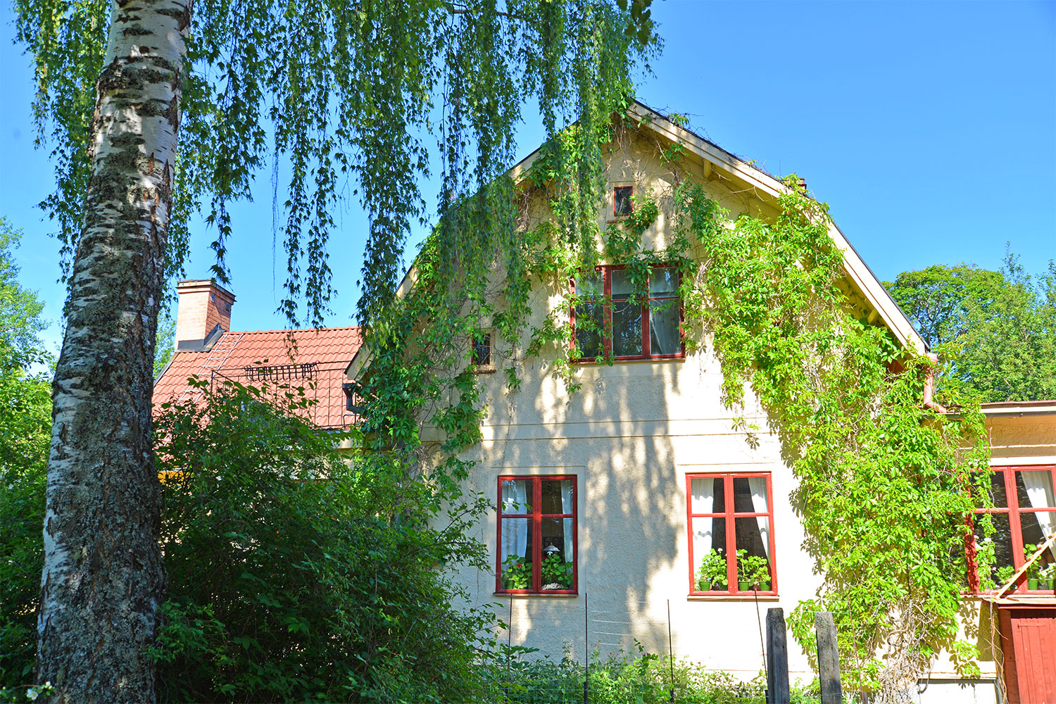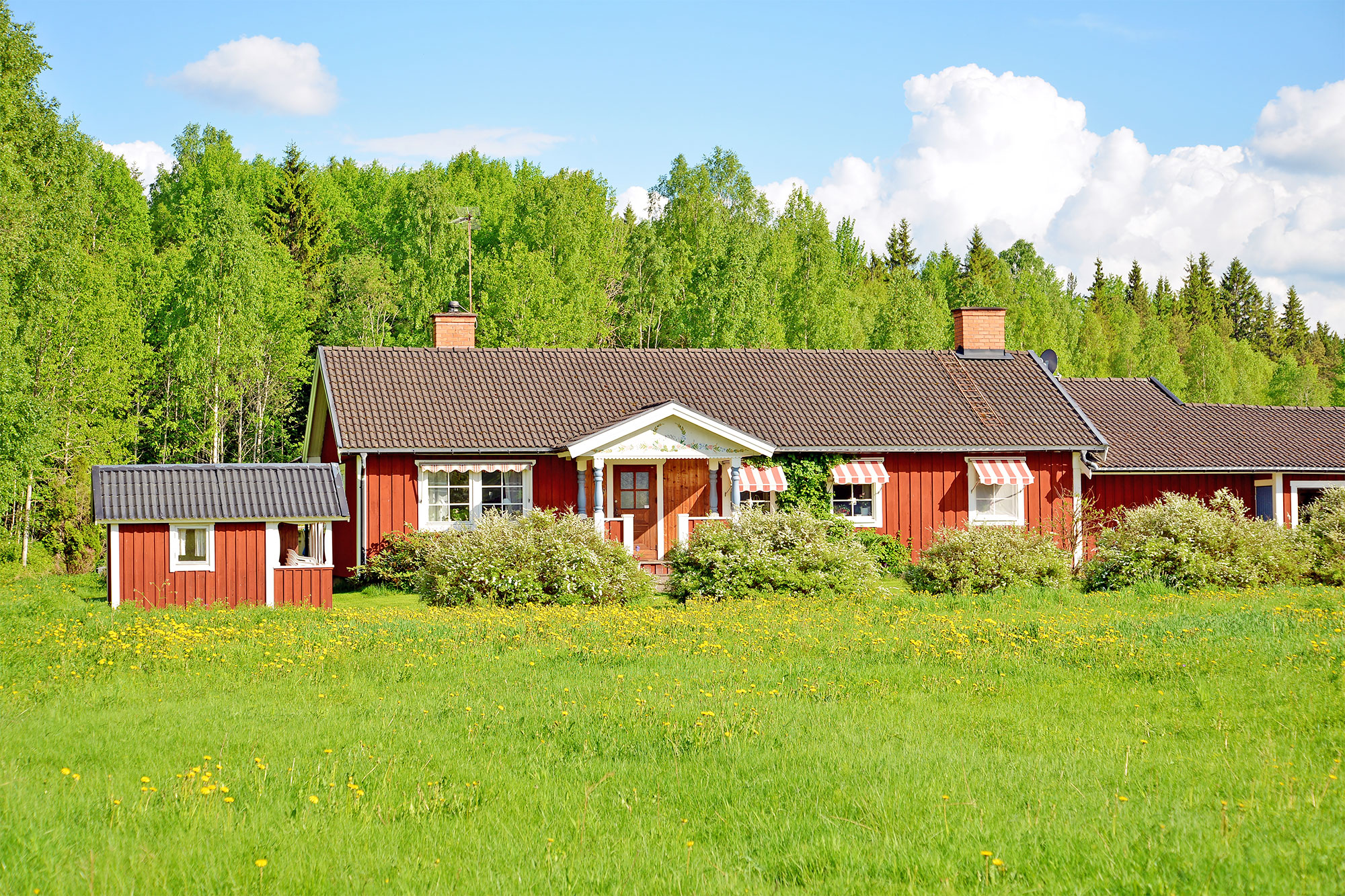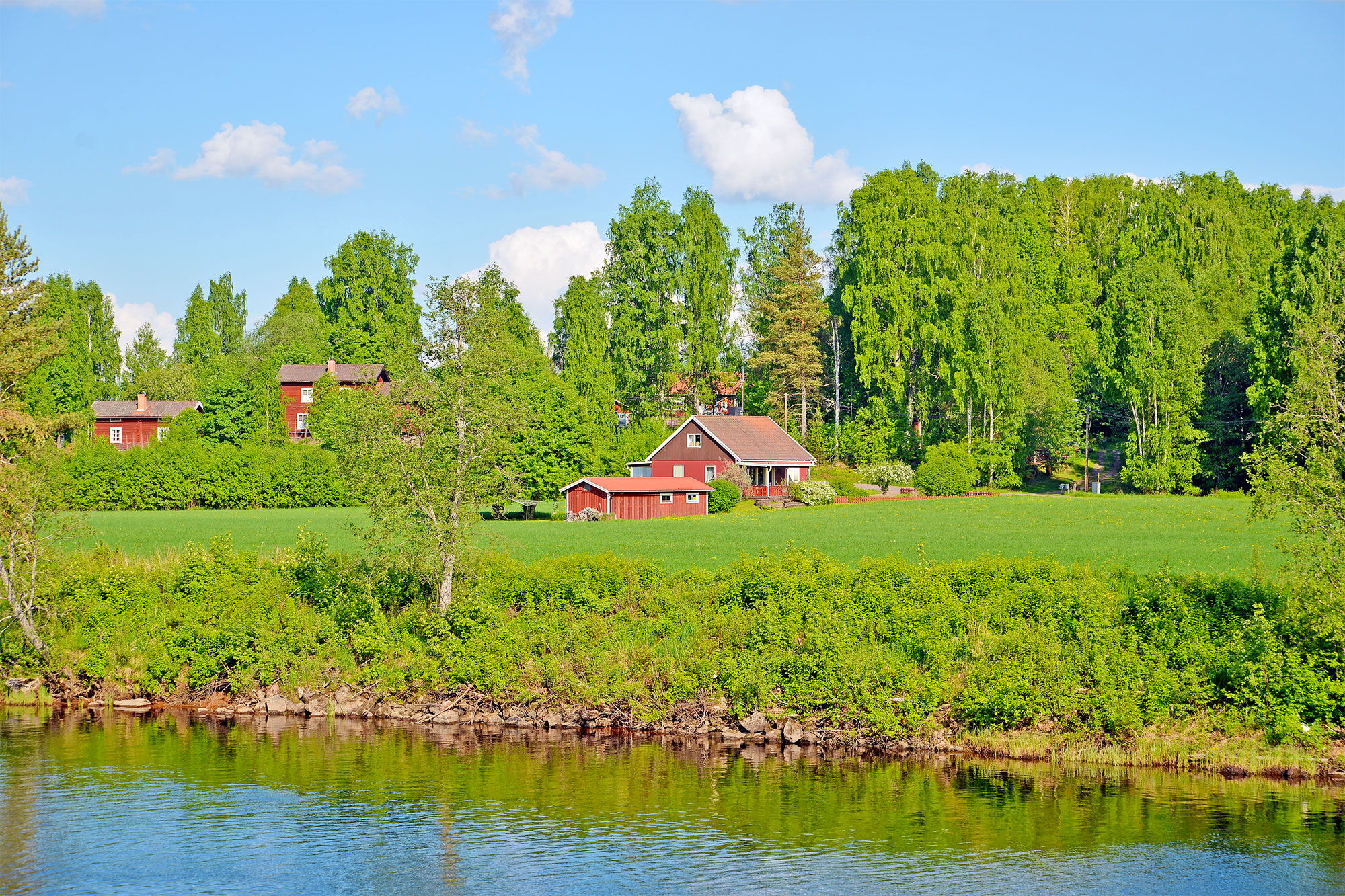 スウェーデン人の"心のふるさと"、ダーラナ〈Dalarna〉。ダーラナの小さな村、ダーラフローダ〈Dala-Floda〉を訪ねて、ストックホルムから特急列車に乗ってボーレンゲ〈Borlänge〉へ。そこから西へ、バスに揺られること約40分。ダーラフローダを流れる美しいヴェステルダール川のほとりに、スウェーデンの伝統的な赤い家々が見えてきます。