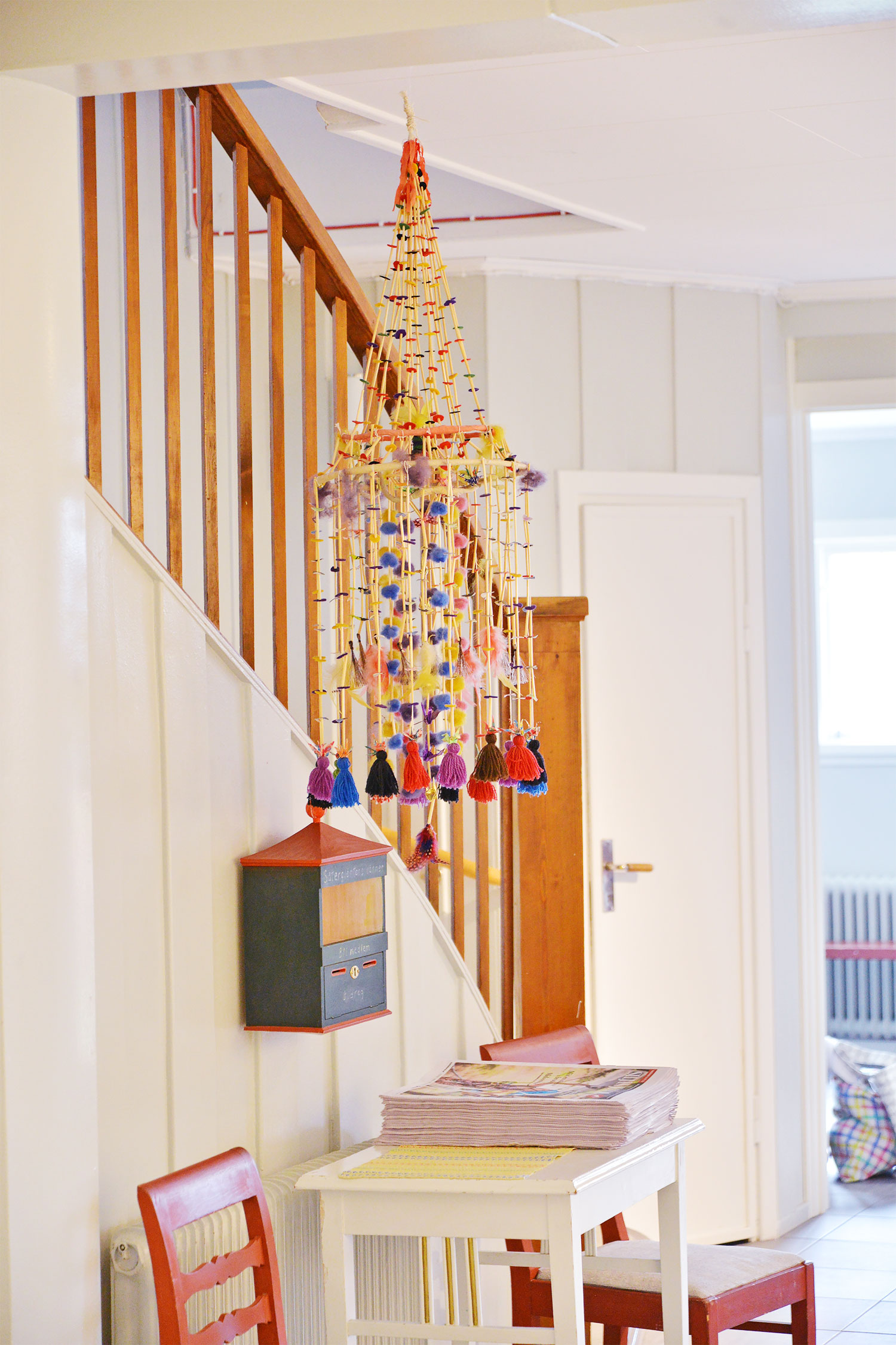 セーテルグレンタン手工芸学校には豊富な品揃えの手工芸ショップもあって、学生でなくてもお土産や手芸の道具を買うことができます。良質なスウェーデンの毛糸や、スウェーデンの編み物の本、スウェーデンの手織りバンドも素敵。木工細工のような手織りバンドの道具もここで手づくりしているそう。木彫りの鳥や人形もかわいい。手工芸ショップの前には、かかしみたいなカラフルなアートが3つ立っていて、とっても愛嬌がある。こんな大自然の森の中でリラックスしながら手芸に没頭できるだなんて、なんて贅沢な時間!