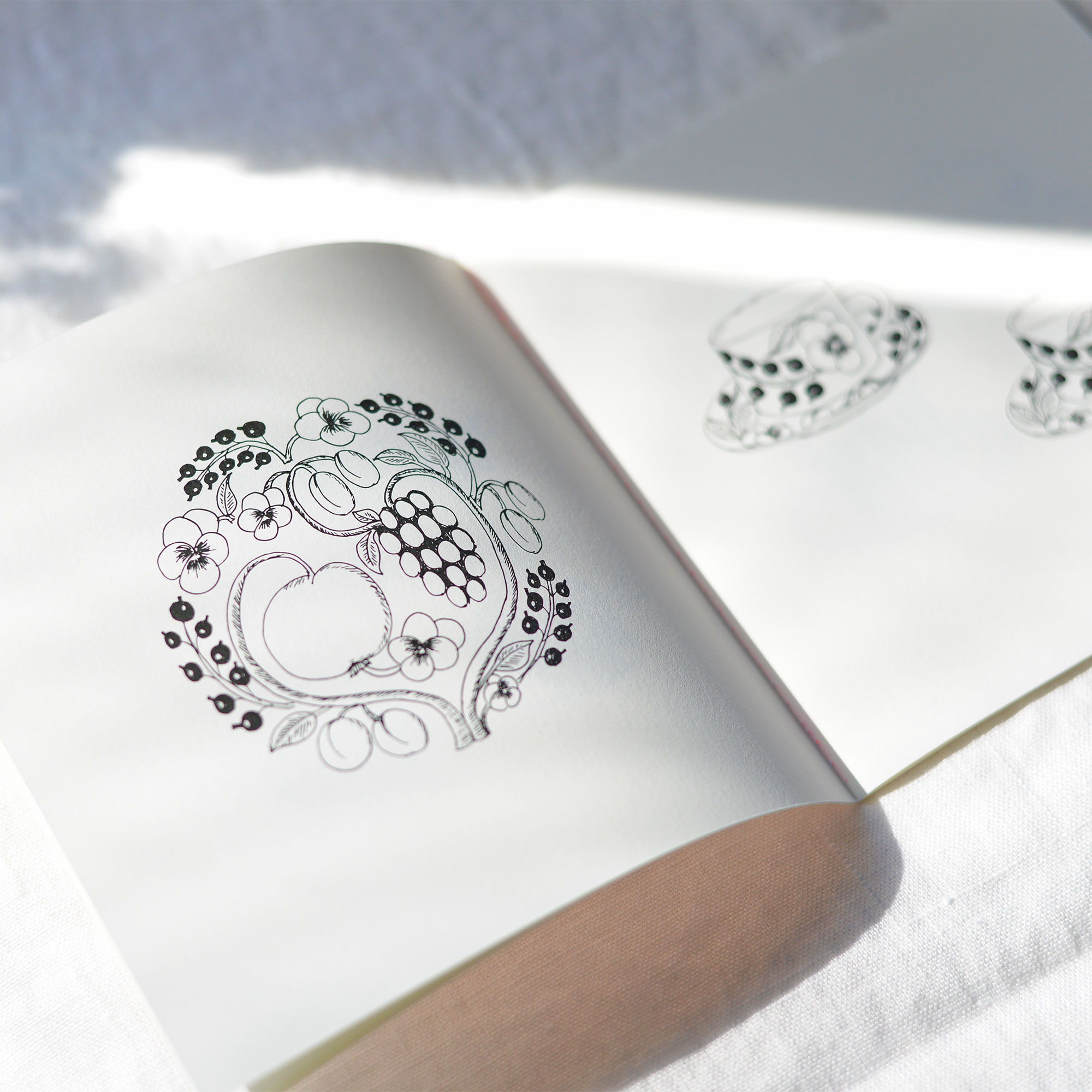 北欧フィーカの「ぬりえ帖」には、「ぬり絵カード」では登場しない北欧ヴィンテージプレートのイラスト「パラティッシ」「モナミ」「エデン」「アピラ」が収録されています。
