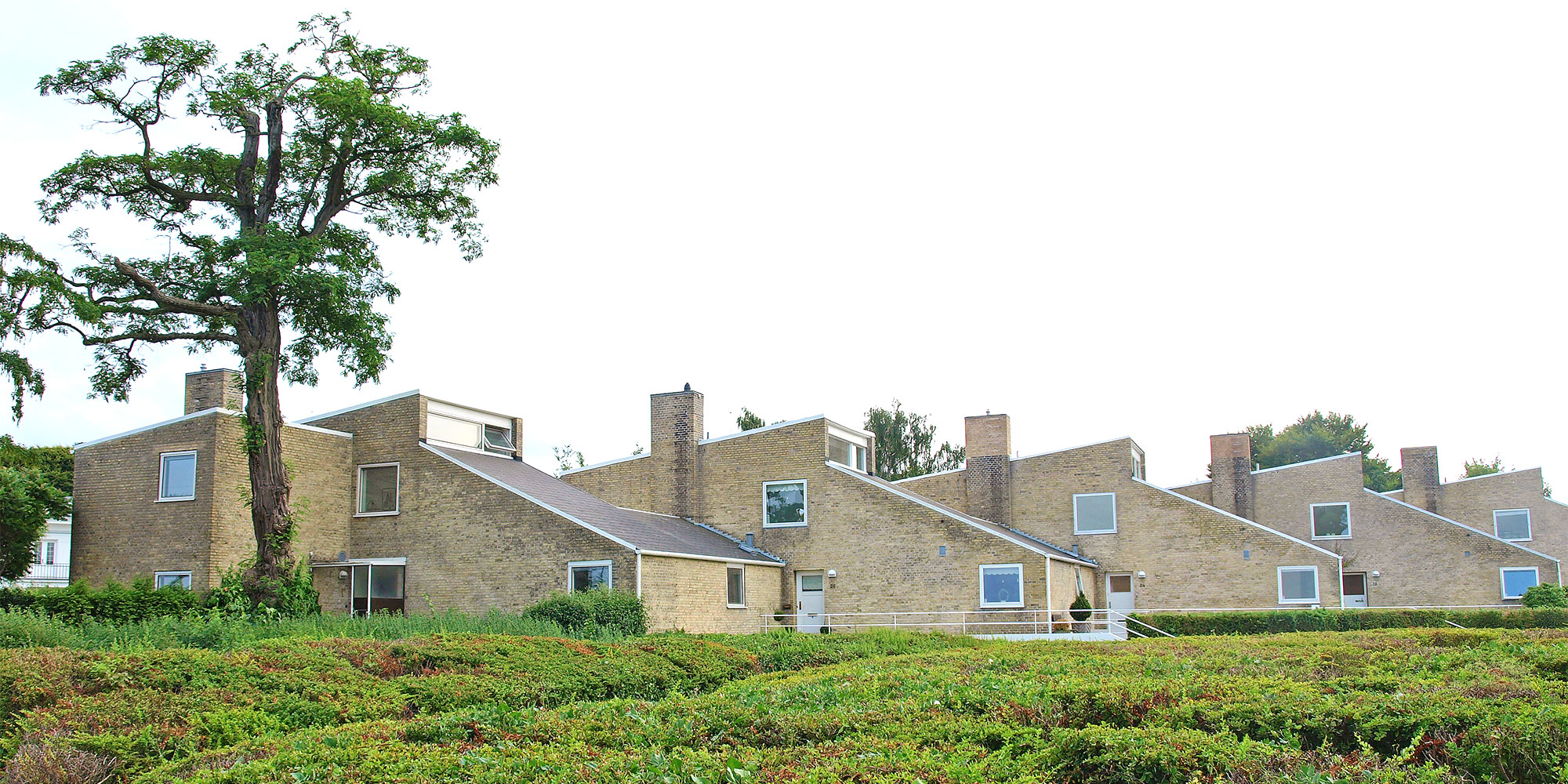 ベラヴィスタの隣に建つ、屋根の傾斜が美しいレンガ造りのテラスハウス、スーホルム〈Søholm I〉。「スーホルム」とは、デンマーク語で“湖のほとりの小さな町”という意味。ヤコブセンが最も愛した建築のひとつといわれ、晩年は海がいちばんきれいに見える部屋で暮らしたそうです。