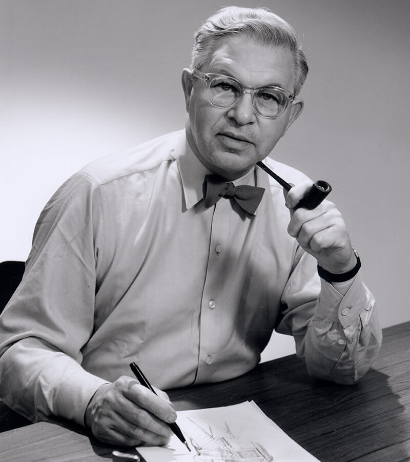 大きな円形の屋根が、若きヤコブセンが描いた「未来の家」をイメージさせます。