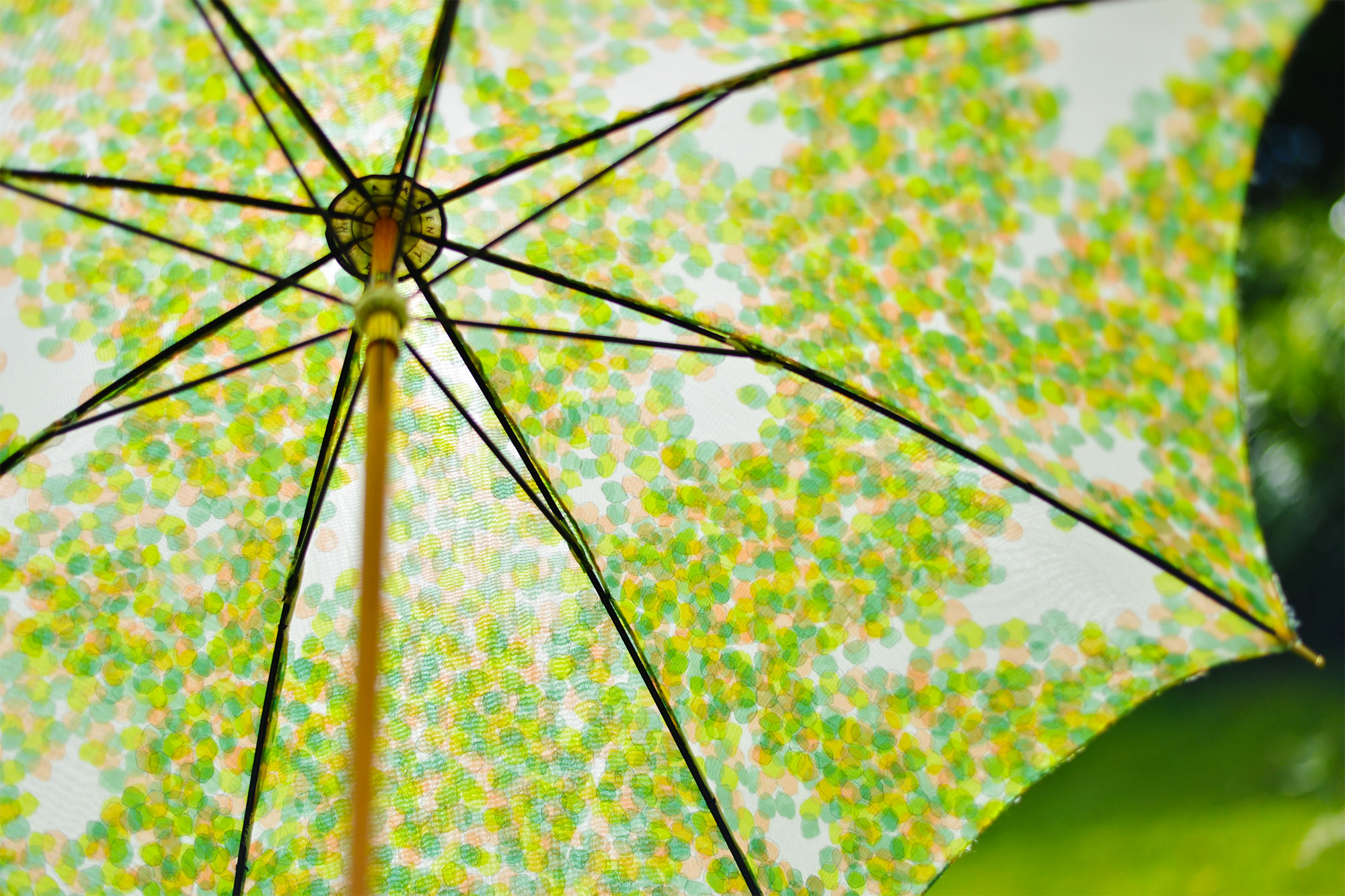 傘作家・飯田純久さんの日々の何気ないスケッチから生まれる傘のテキスタイル。日傘・雨傘の美しいテキスタイルは傘の生地だけなく、バックやタオルやポスカードにも生まれ変わる。