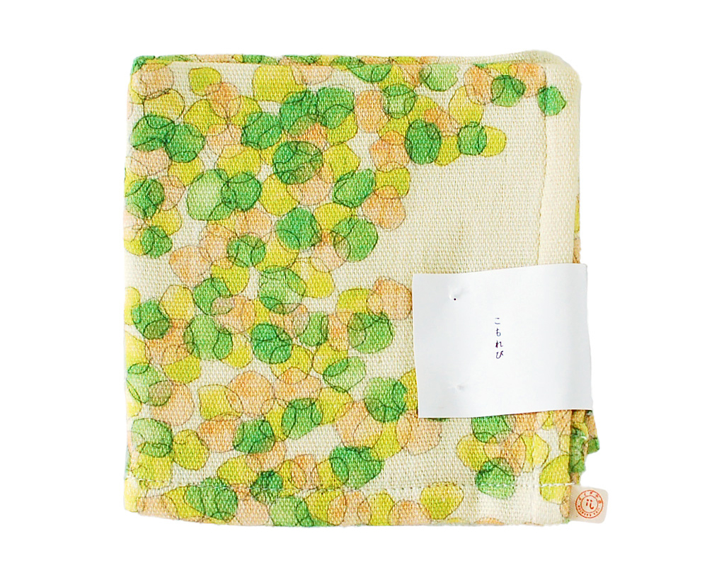 「キンモクセイ」「押花 」「こもれび 」3つのテキスタイルグッズをプレゼントにしようと思ったら、同じ柄のミニタオルが仲良くいっしょについてきた。