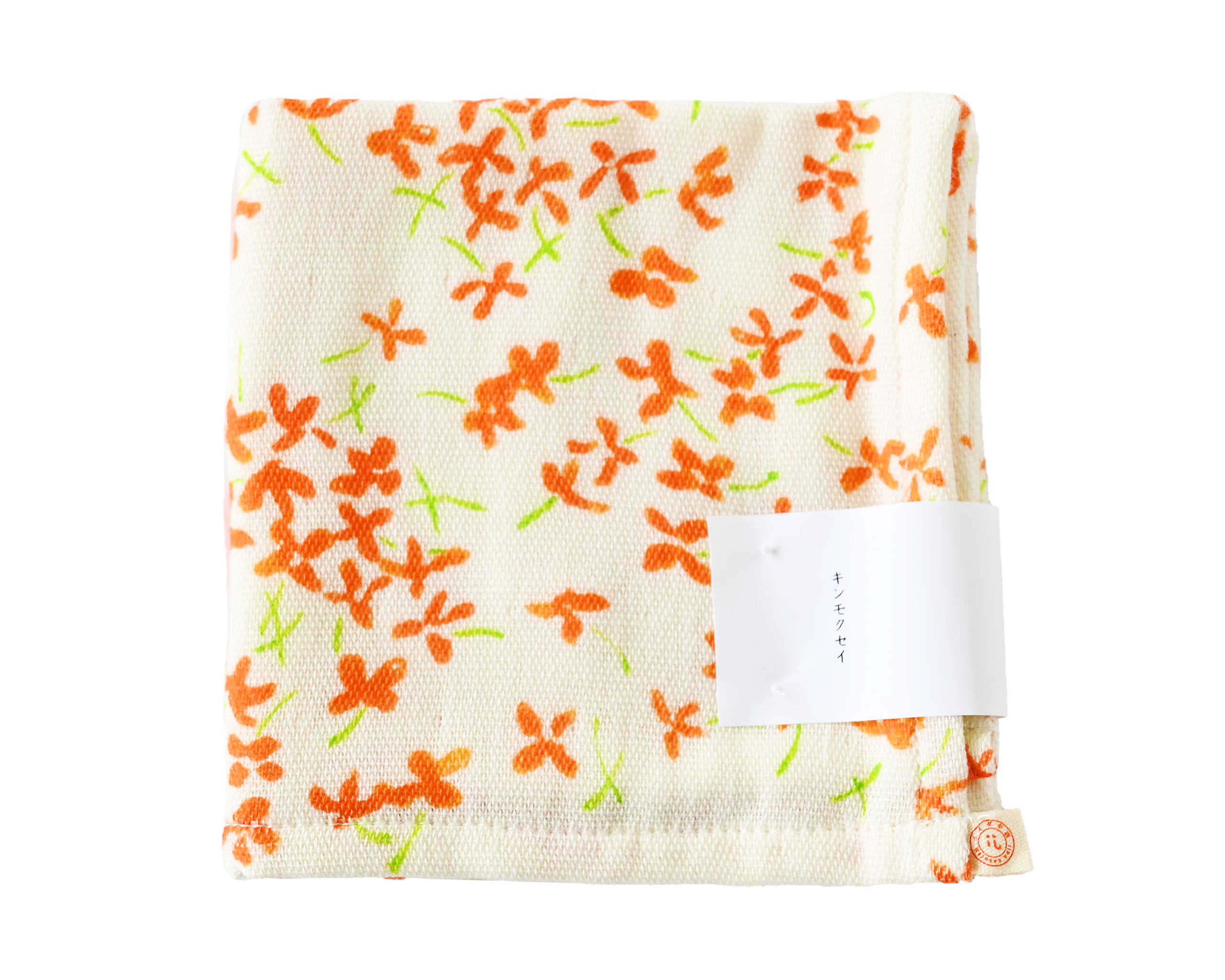 白地に鮮やかなオレンジの花が咲く「キンモクセイ」柄