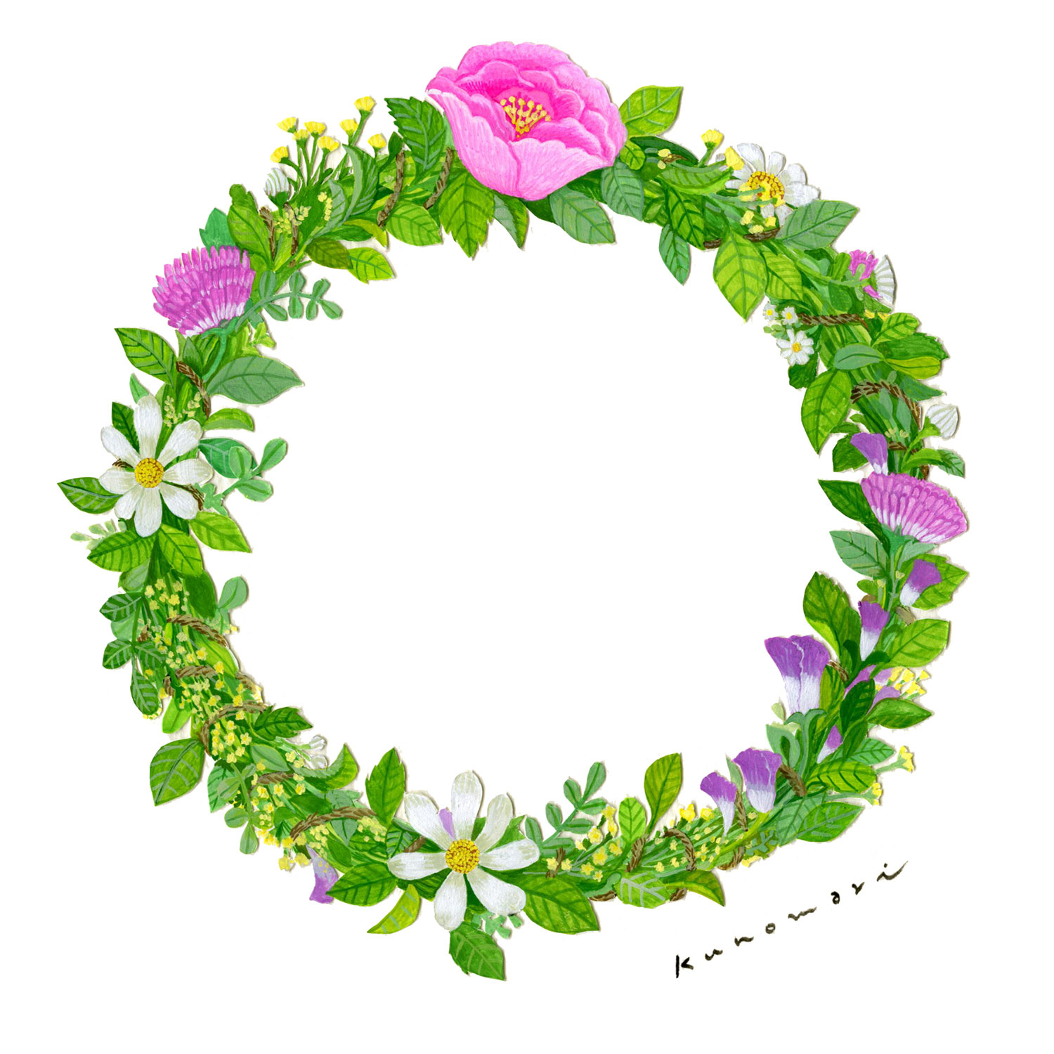 野花を摘んで編んだ「夏至の花冠」の 2つの作品を〈夏のレター〉としてお贈りします。