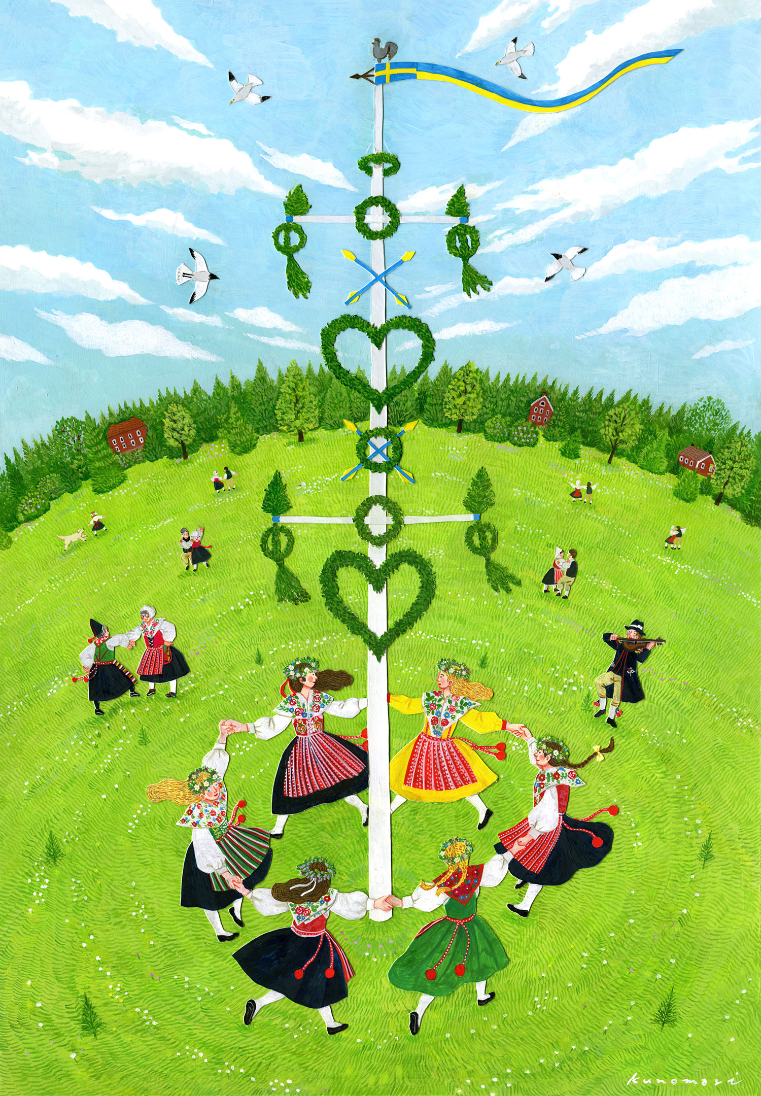 イラストレーター・くのまりさんが描いたスウェーデン・ダーラナの夏至祭の作品