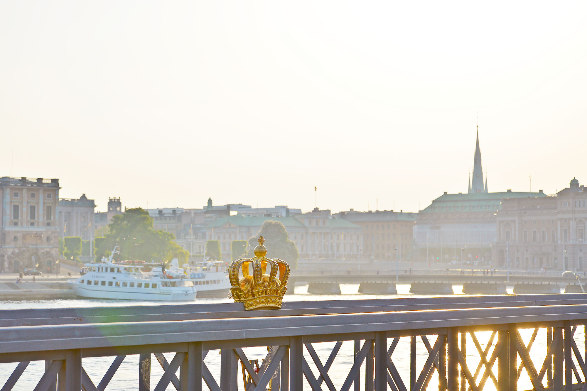 スウェーデン国立美術館を前を進むと、シェップスホルメン島へ橋がかかっています。橋の真ん中には金の王冠があって、そこはストックホルムのランドスケープをカメラにおさめることができる絶好の撮影ポイントです!