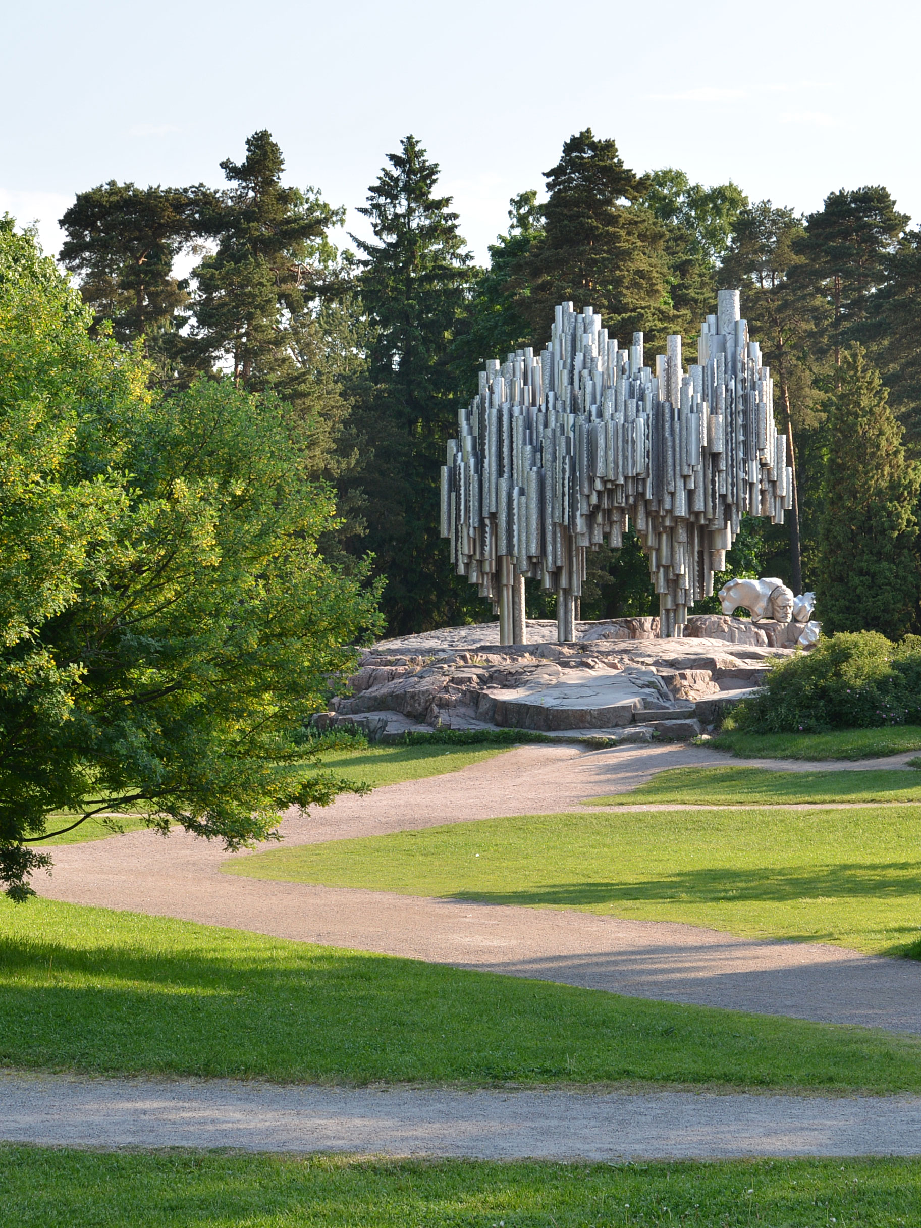 □写真左/ 作曲家ジャン・シベリウスのモニュメントが輝く、シベリウス公園(Sibeliuksen Puisto)