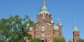 マーケット広場の東にそびえる北欧最大のロシア正教の教会ウスペンスキ寺院(Uspenskin Katedraali)。ロシア人建築家ゴルノスタイッフによって設計され、1868年に完成。「玉ねぎ」のような黄金に輝く13のキューポラを持つ、赤レンガの教会。教会の近くには、「玉ねぎ」という名のフィンランド料理のレストラン、ラヴィントラ・シプリ(Ravintola Sipuli)もあるのだとか。