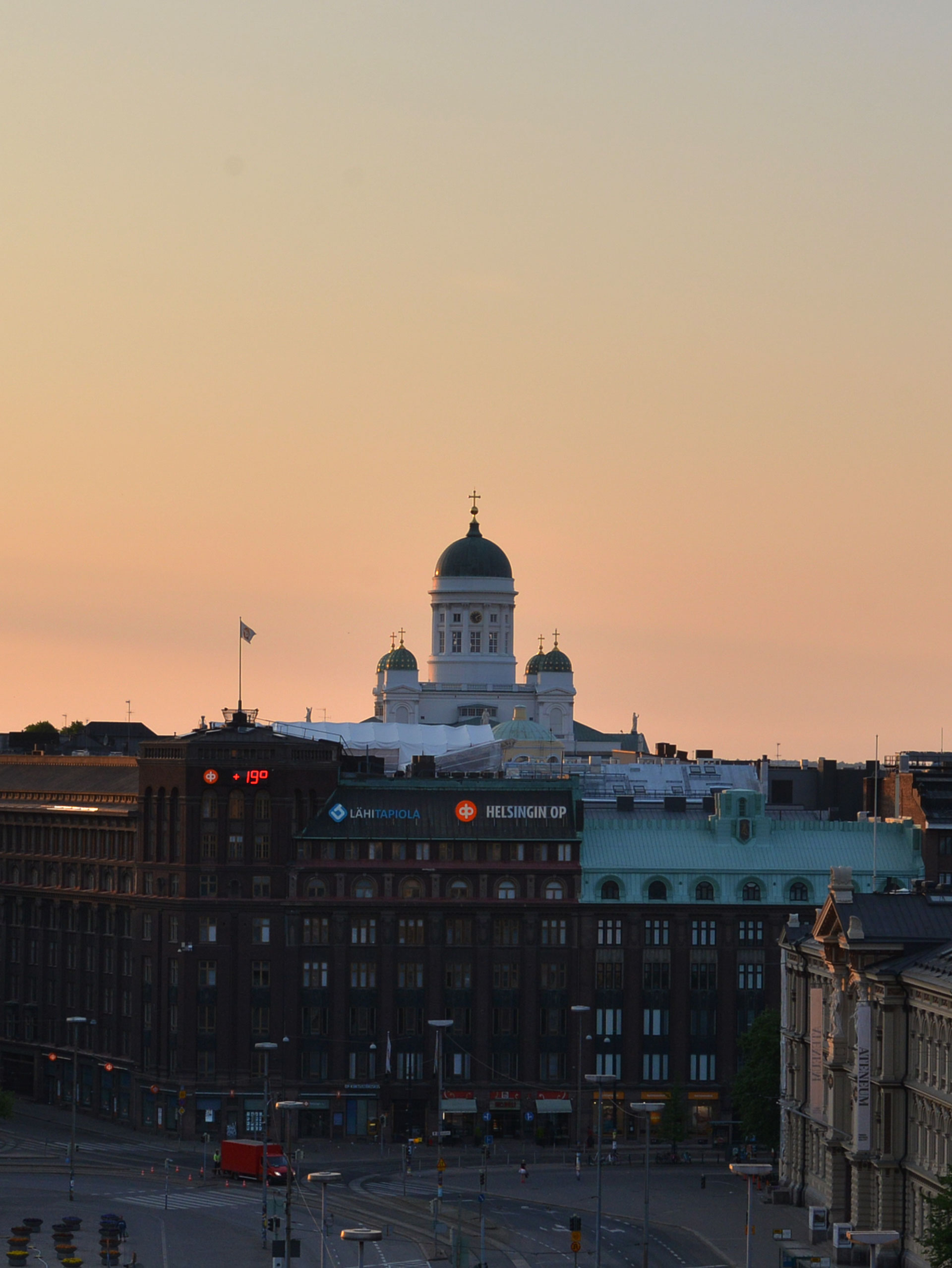 夏至が近い白夜のヘルシンキ。真夜中に訪れるつかのまの日没の、夕焼けに染まる大聖堂が忘れられません。