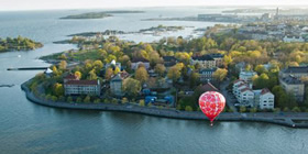 ▶ YouTube / Marimekko Unikko hot-air balloon flying above the silhouette of Helsinki