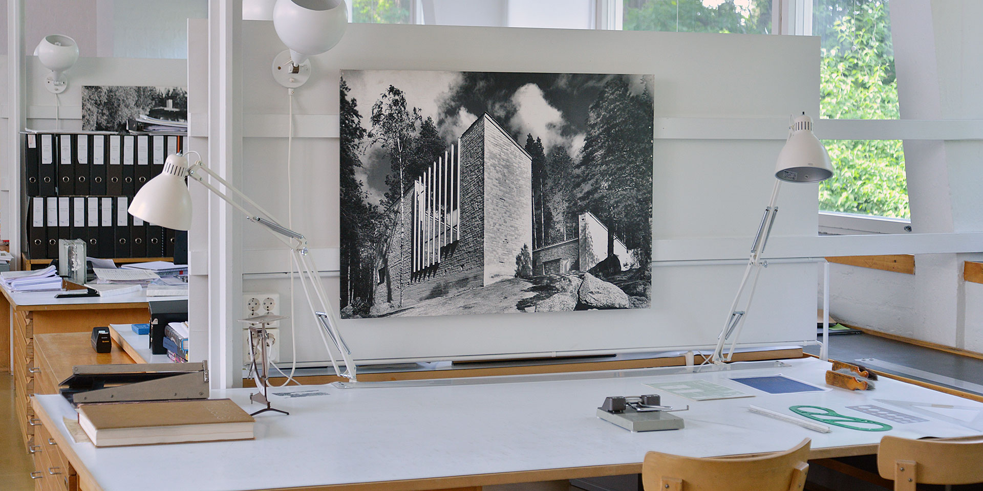 1955年、アルヴァ・アアルト(Alvar Aalto)はムンキニエミのアアルト自邸(The Aalto House)から歩いて10分ほどの場所に新しいアトリエをつくりました。ヘルシンキ工科大学やフィンランド国民年協会などの大規模プロジェクトを手がけはじめ、自邸の仕事場では手狭となってしまったためです。