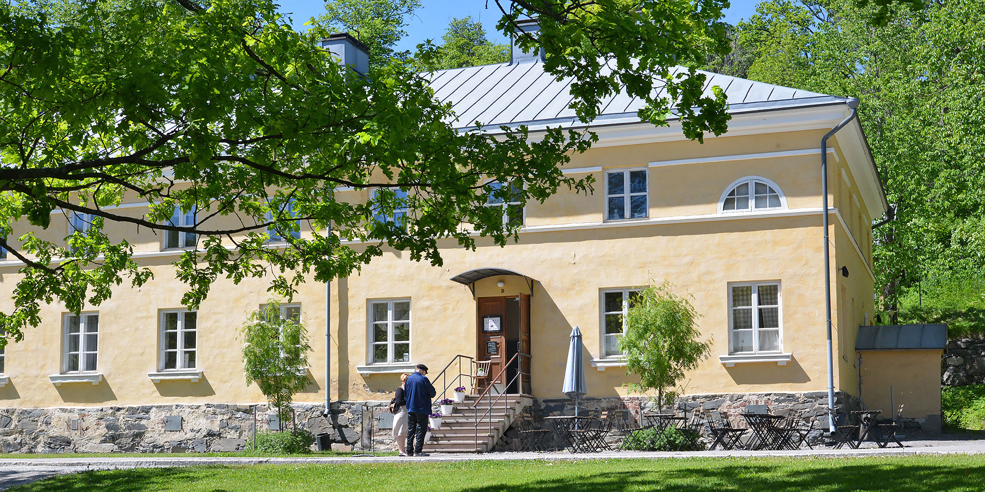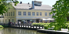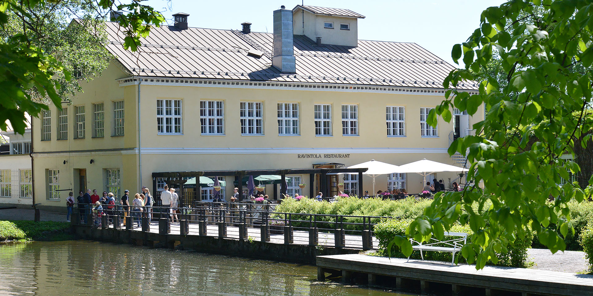 旧カトラリー工場だったフィスカルスフォーラムの後ろには、むかし製鉄工場として使われていた建物があり、ここは1994年にフィスカルスで初めて展示会が行われた記念すべき場所。1800年代初頭に造られた由緒正しい建物は、今は人気のレストラン・クパリパヤ(Kuparipaja)になっていて、夏は川沿いのテラス席でランチがおすすめ!
