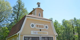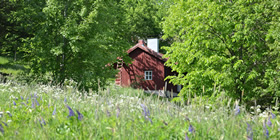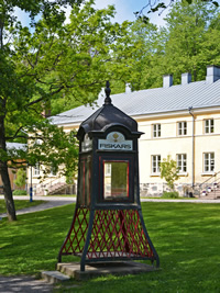 むかしは学校の校舎だった赤いレンガのフィスカルスの時計塔。村のランドマークになっている時計塔の前には、きれいな小川が流れています。この川はビルネス(Billnäs)という近くの村まで続いているのだとか。かつて製鉄所があったフィスカルスとビルネスの2つの村では、毎年夏にフィンランド最大のアンティークマーケット(骨董市)が開かれます。年間10万人の観光客が訪れるというフィスカルスは、フィンランドでも人気の村なのです。