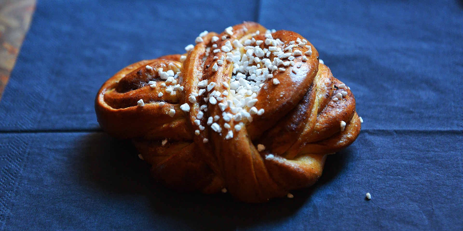 北欧のシナモンロールは、粗挽きのカルダモンがピリリと効いてスパイシー。強力粉とパールシュガーが決め手です。
