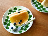 北欧の家庭では、朝昼夜、おやつに出てくるパンケーキ!ベーキングパウダーが入らないもっちりとしたクレープに、ベリーのジャムを添えて食べるのが一般的。ロールストランドのヴィンテージプレートも素敵。