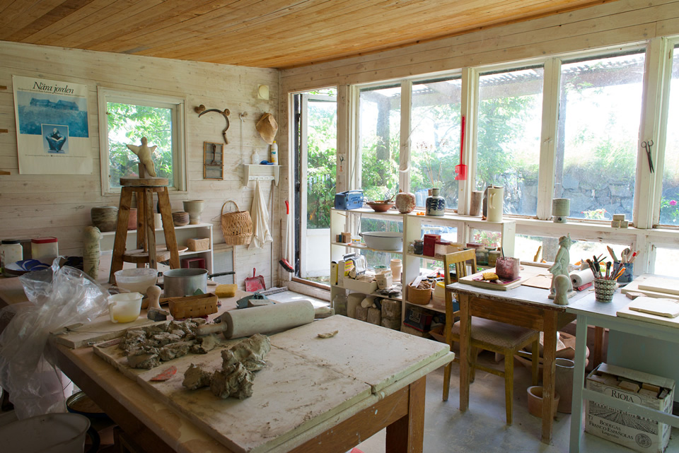 スウェーデン最南端のスコーネ地方には、50 年以上欠かすこと無く通う、リサのサマーハウスがあります。母屋とは別にたてたこのアトリエは夫グンナルが作ったもの。夫婦で作り上げたこの場所は、試作品を作る場所として欠かせない場所です。本展では、このサマーハウスアトリエの再現も予定しています。