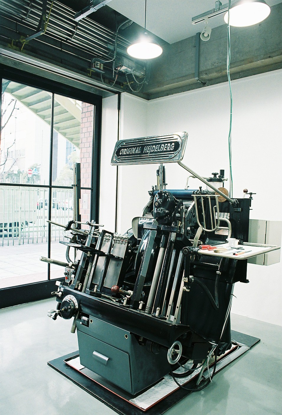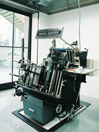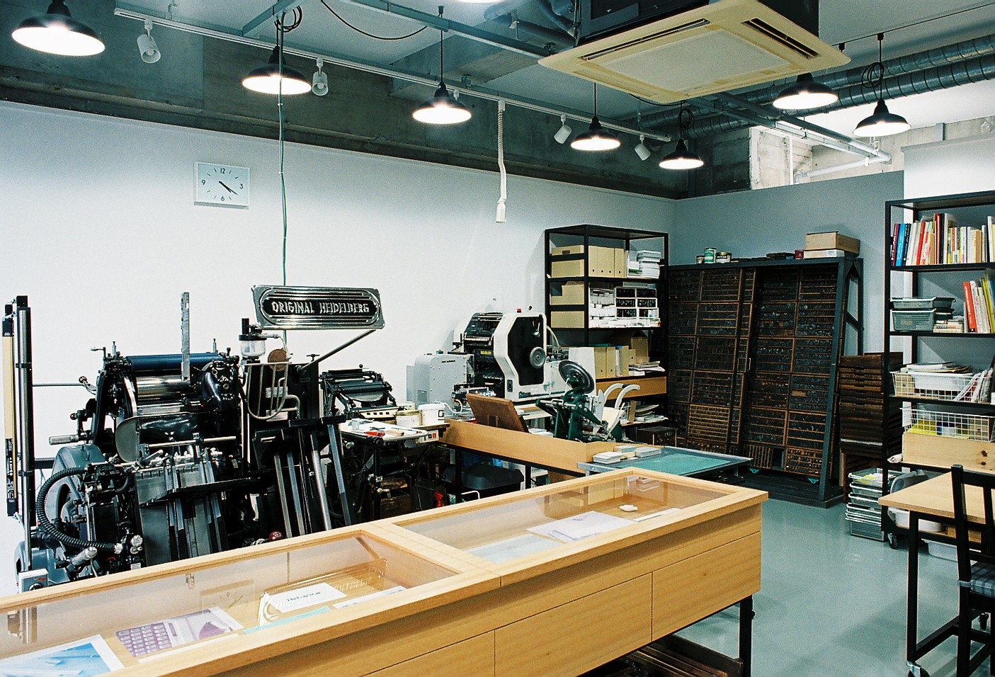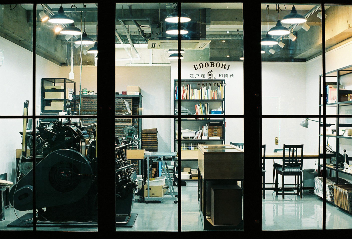 社長さんの活版印刷への強い思いが、5年近くの構想を経て実ることになります。すでに製造中止になっていたドイツの老舗ハイデルベルグ社(HEIDELBERG)の印刷機をオーバーホールして仕入れ、2011年の秋、大阪・江戸堀に新しいコンセプトの印刷所「江戸堀印刷所」をオープンしました。