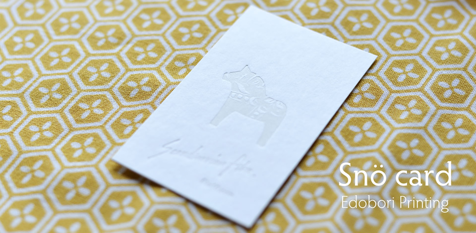 そういって、大阪・江戸堀にある「江戸堀印刷所」さんにお願いしてつくってもらった、北欧フィーカの雪のカード。ダーラヘストに描かれた花模様クールビッツや手書きのロゴが、活版印刷で繊細に仕上がっています。まっしろな雪のような紙の凹みを指先でふれると、なんとも幸せな気持ちになります。