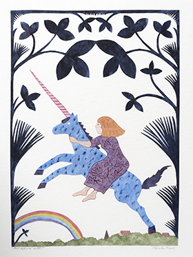 彼女はテキスタイル作家として独自の世界を築き上げた後、切り絵と出会い、独創的でファンタジー溢れる切り絵の世界を表現し続けています。