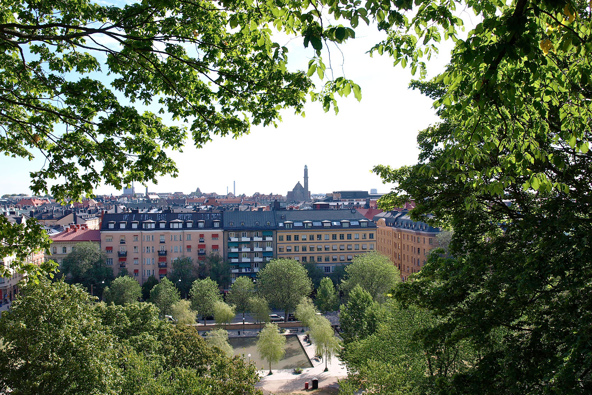 メトロに乗って、ロードマンスガータン(Rådmansgatan)駅を出ると、天文台のある小高い丘の公園が広がり、オレンジ色の丸い筒のカタチをした建物が見えてきます。