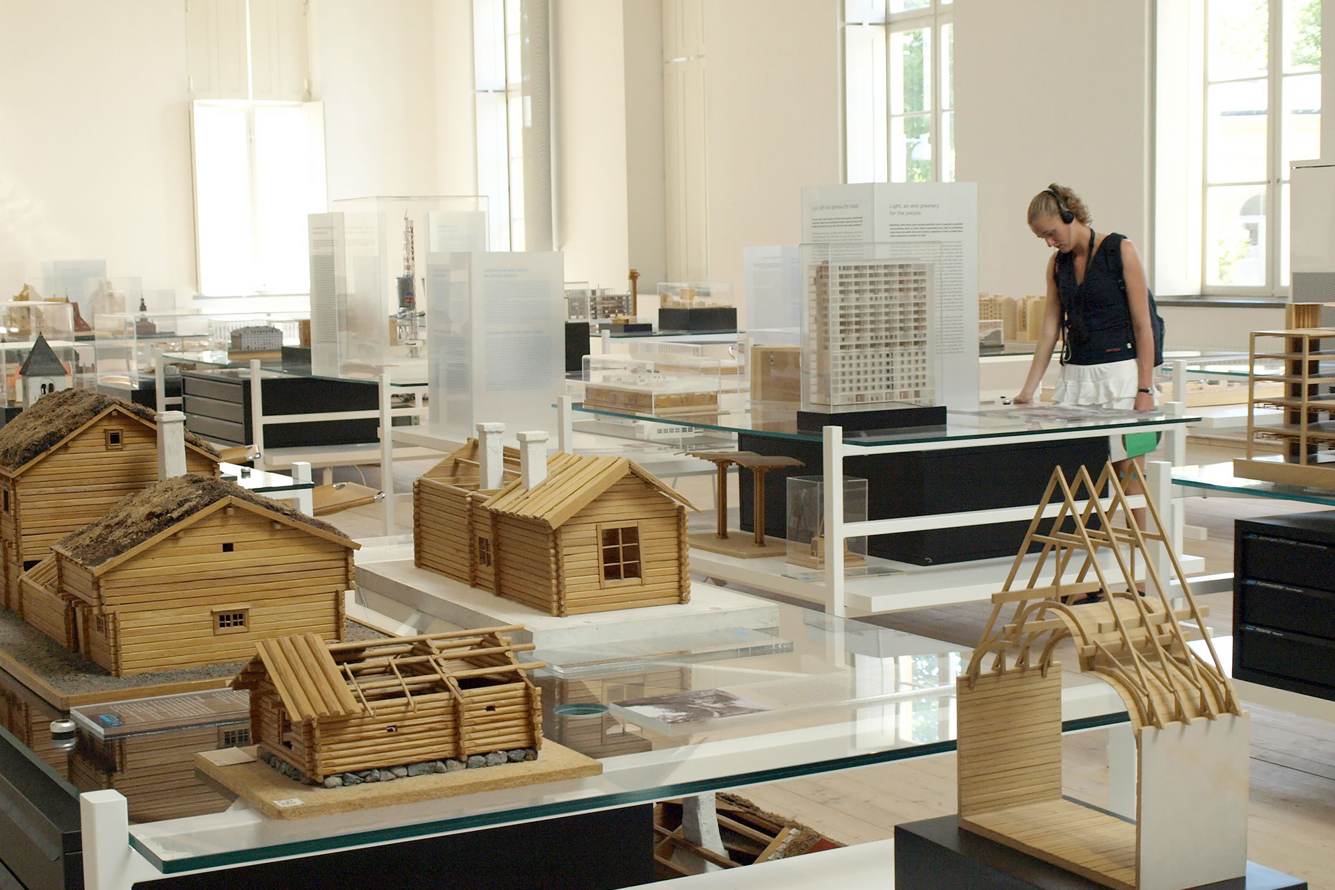 スウェーデン建築の歴史が、ミニチュアの模型になってわかりやすく説明されている建築博物館(Arkitekturmuseet)。壁から天井まで真っ白なカンバスのような空間の中に、木の模型の歴史ある建物が並んでいて、スウェーデン建築の時代を超えた機能美とデザインを堪能できます。