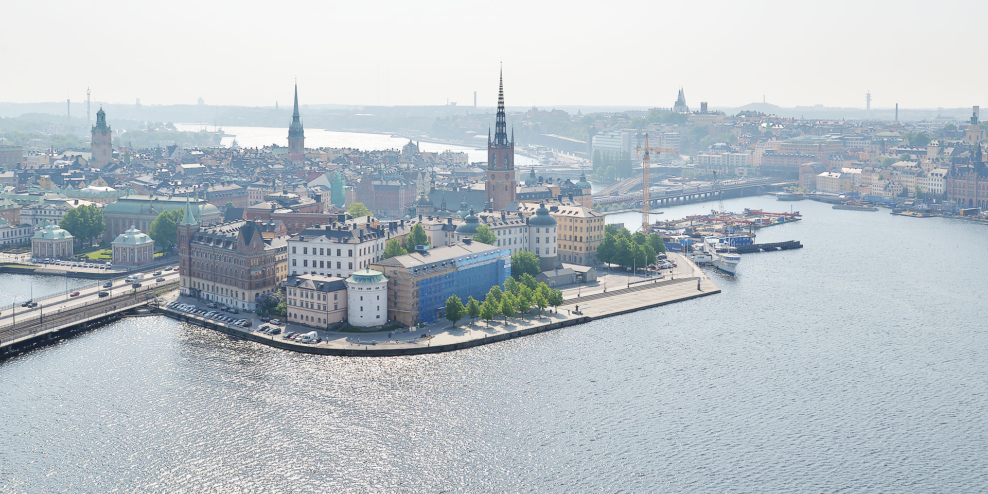 □写真上/ ストックホルム市庁舎の塔から望む、リッダーホルメン島と旧市街ガムラ・スタン