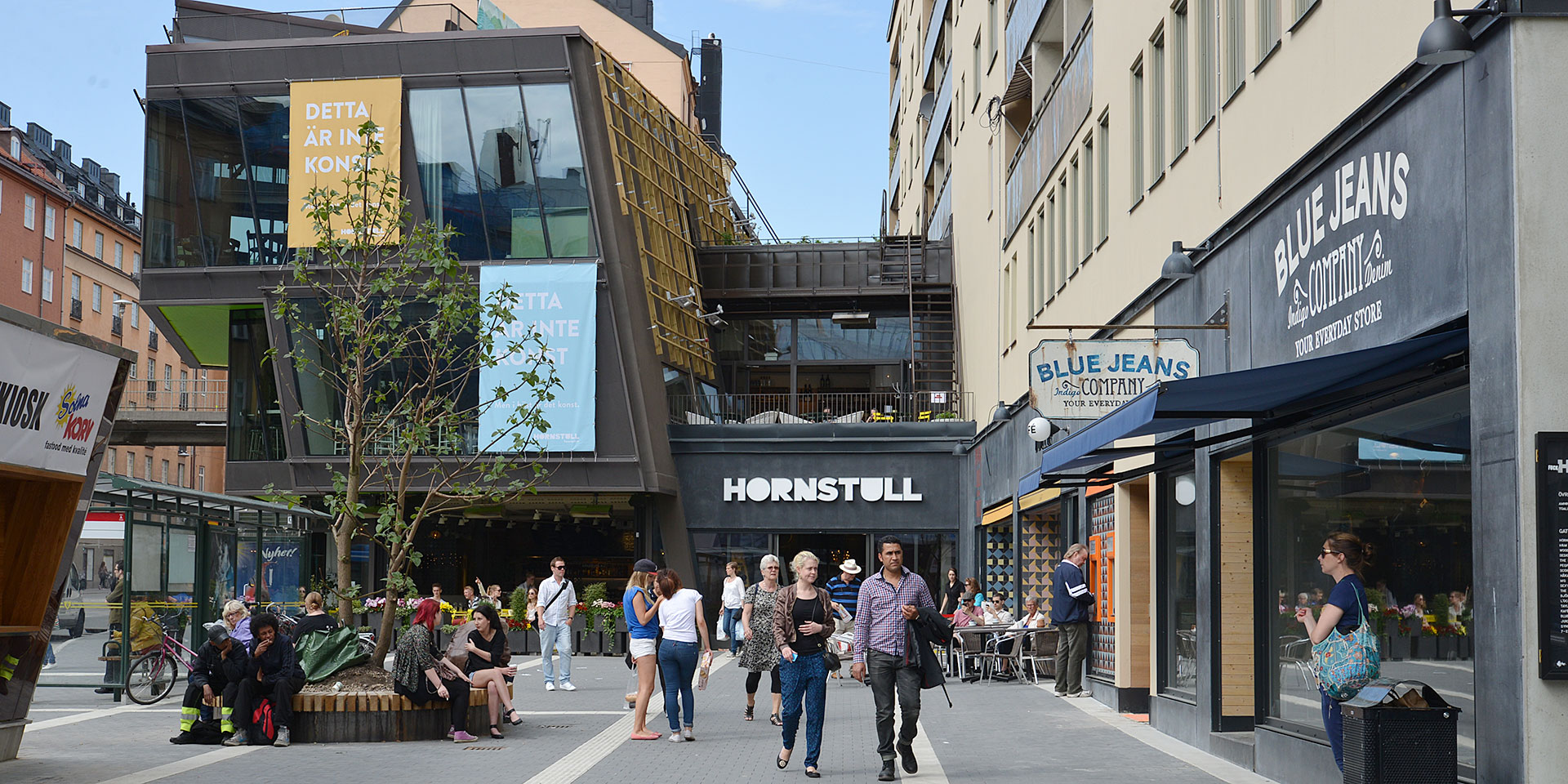 ドロップコーヒーを出て、セーデルマルム島の西へ。ギャラリーがショップが並ぶ大通りホンシュガータン(Hornsgatan)を歩き、やって来たのは、再開発により新たな人気スポットとしてにぎわうホンシュトゥール(Hornstull)。スルッセン(Slussen)から地下鉄レッドラインで3駅目の駅です。