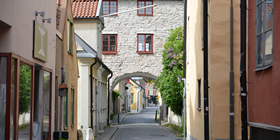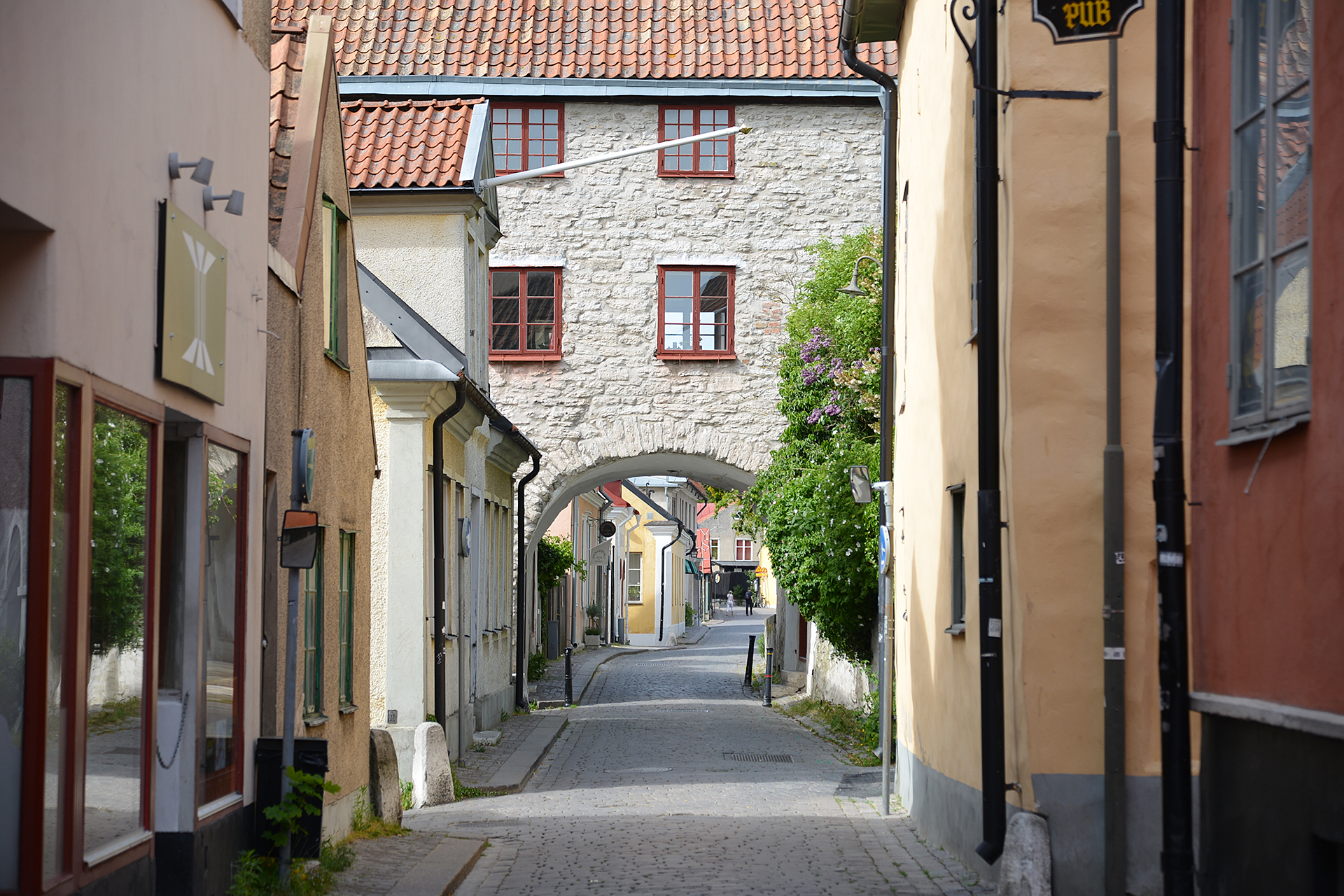 西のヴィスビー(Visby)は、3.4kmの城壁に囲まれた中世の面影を色濃く残す街で、スウェーデンの世界遺産のひとつ。