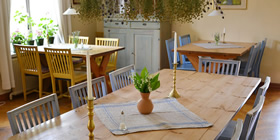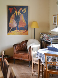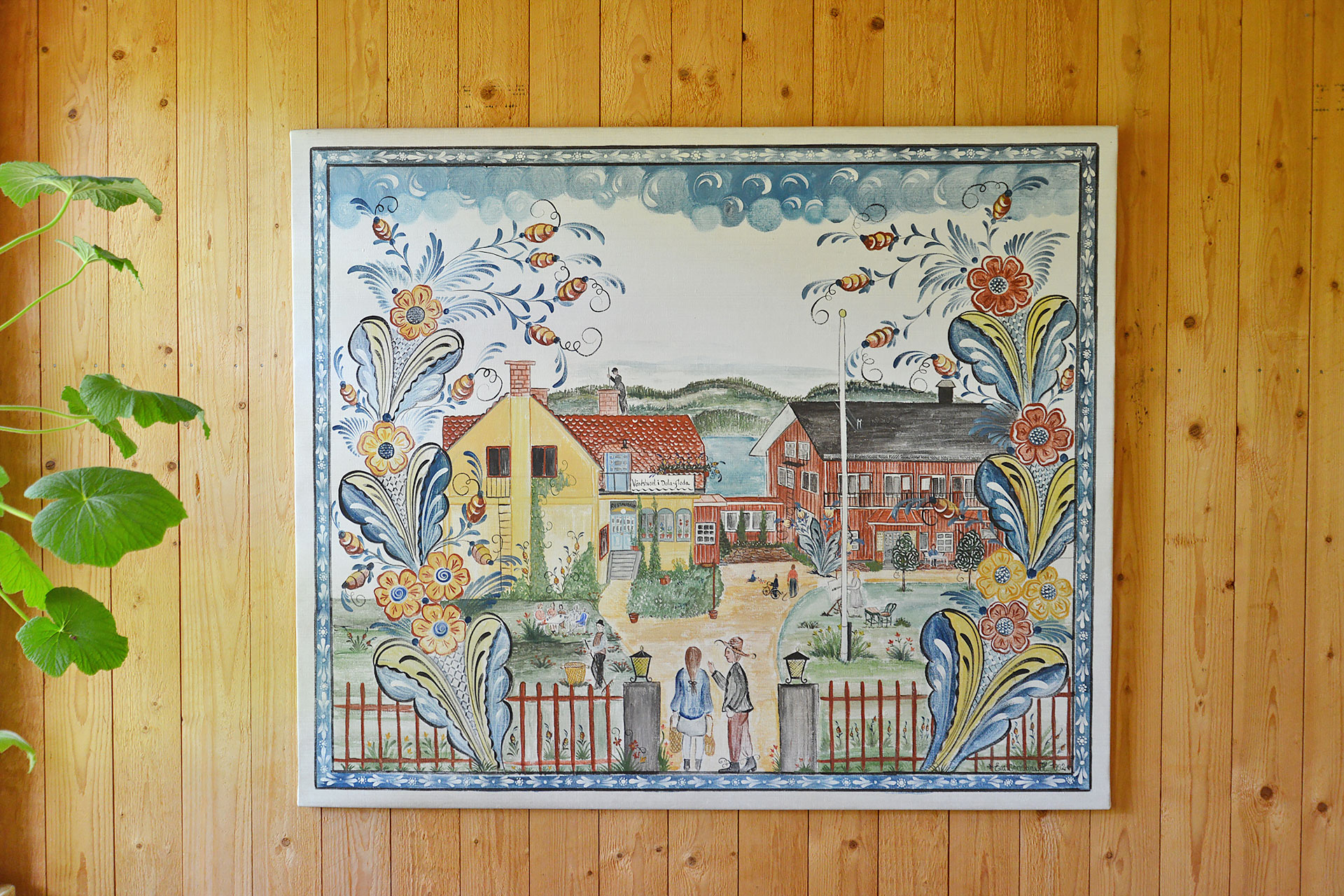 □写真下/ 100年以上の歴史を持つスウェーデン・ダーラフローダのゲストハウスが描かれた絵